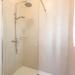 Badeværelset har separat toilet og en bruser, mens værelse har en balkon, en sofa og et opholdsområde.